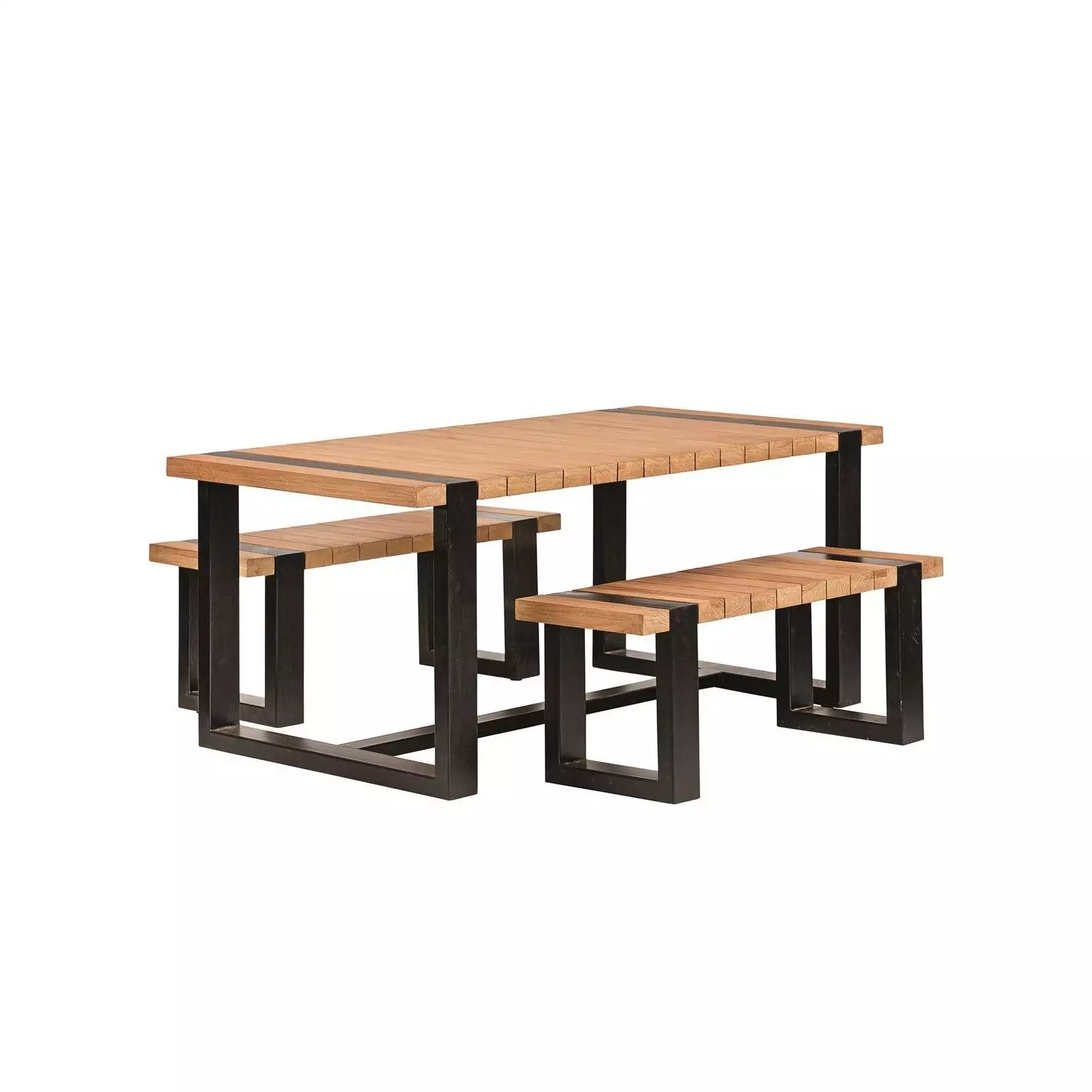 La mesa de teca de 40 mm de grosor combinada con el acero inoxidable negro asegurará años de uso. Una gran adición para su jardín, tal vez debajo de un mirador o un porche, los dos bancos pueden ser una gran excusa para pasar tiempo libre.