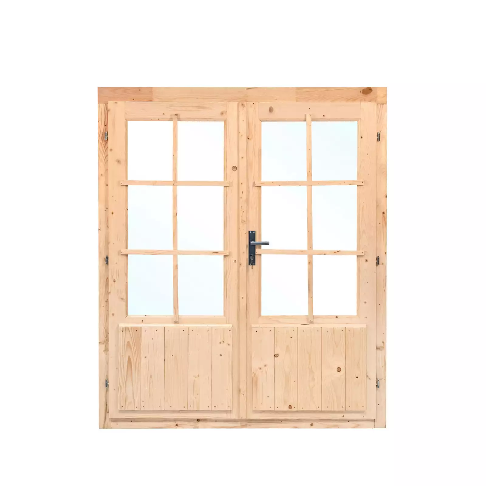 La puerta doble para caseta de madera es la solución perfecta para quienes buscan un acceso más amplio y funcional a su cabaña o caseta. Con unas medidas de 159x190 cm, esta puerta se adapta a construcciones de madera con lamas de 28 a 44 mm de grosor.