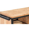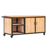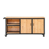 El marco de acero está hecho de tubos cuadrados de 4,0 x 4,0 cm. La encimera, las puertas, los paneles laterales y traseros, así como el estante intermedio e inferior, están hechos de tablones de madera de abeto douglas laminados de 1,8 x 14,5 cm.