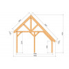 Modelo Billund tipo 1 Medidas exteriores 600 x 460 cm Planta 600 x 400 cm Altura de cumbrera 420 cm Paso libre frontal 279 cm Paso libre lateral 179 cm Material Pino rojo laminado Postes 14x14 cm Tipo de techo Asimétrico a dos aguas Paredes Sin paredes (abierta)