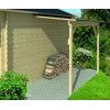 Porche para anexar a casetas de madera de abeto nórdico, ideal para leñero, guardar las bicis, para la barbacoa, para guardar el depósito de pellet. Medidas 175 cms de largo, 150 cms de ancho. Ideal para casetas de madera para jardín.