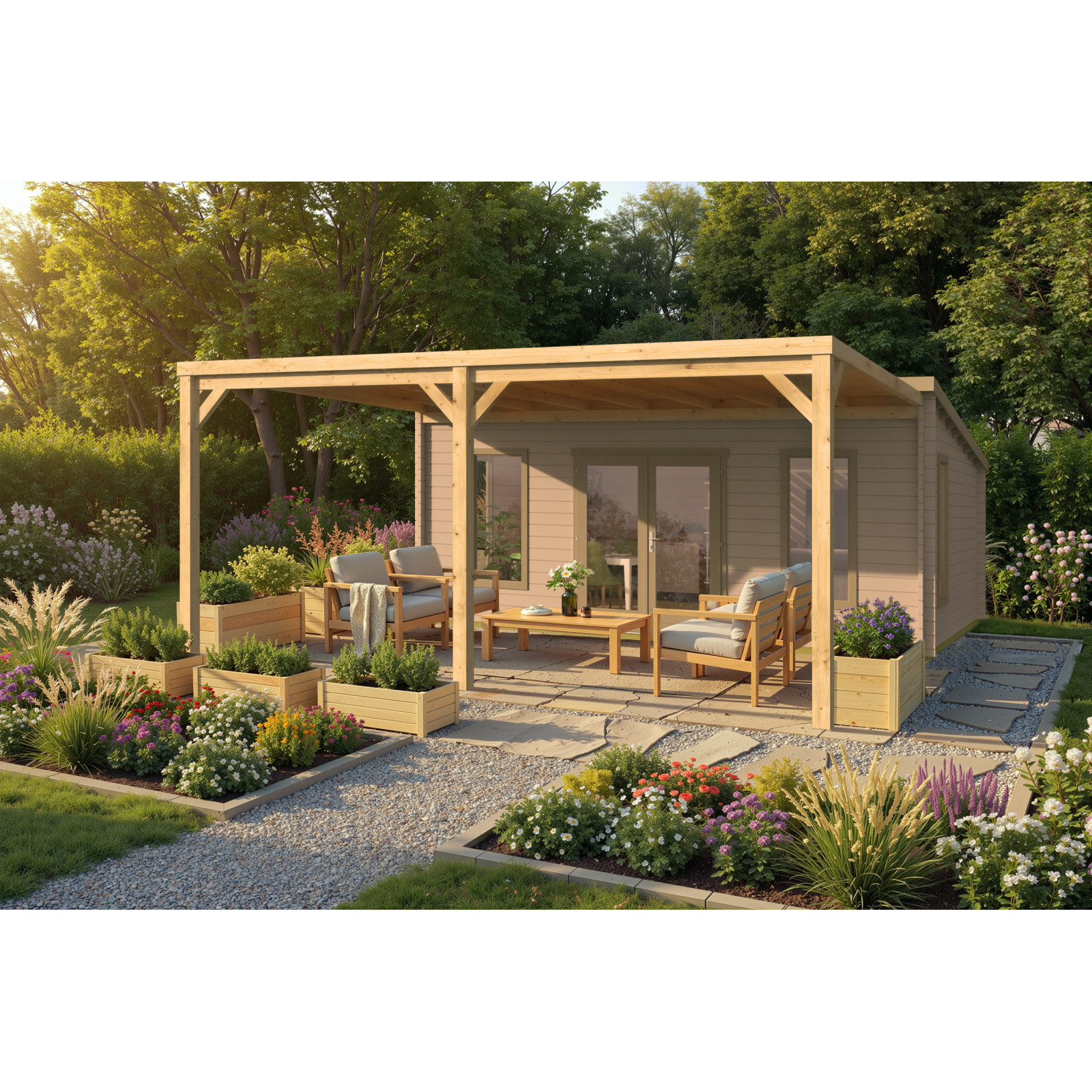 El porche cochera 4x6 metros ROSES-B ofrece la mayor versatilidad de la gama gracias a su amplia superficie: