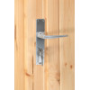 Esta práctica puerta para caseta de abeto nórdico, de medidas 83x188 cms apertura exterior. Perfecta para abrir un hueco adicional en casetas o cabañas.