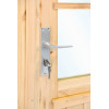 Esta puerta de madera con cristal es perfecta para sustituir o ampliar las entradas estándar de casetas de jardín, bungalós y casas de madera. Se adapta a los modelos de Hobycasa con paredes de 28, 40, 45 y 70 mm, ofreciendo una mejora significativa en accesibilidad, ventilación y estética para cualquier proyecto de construcción en madera.