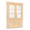 La puerta extra doble con doble cristal XXL de 174x209 cm es un complemento ideal para casas y casetas de madera que necesitan una entrada amplia y luminosa. Compatible con grosores de pared de 28 a 70 mm, esta puerta ofrece una apertura generosa que facilita el acceso de mobiliario y equipamiento, además de inundar el interior de luz natural gracias a sus amplios paneles de doble cristal.