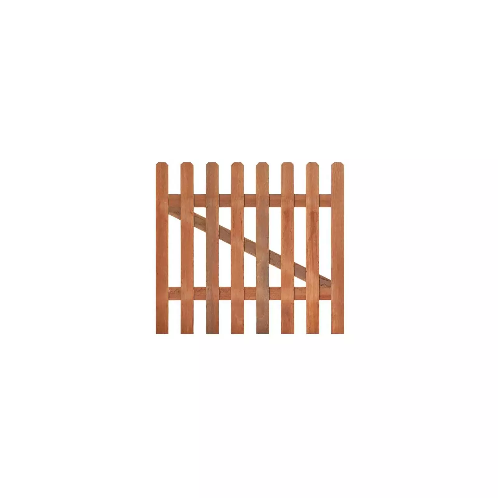 Valla de madera tropical dura, con acabado cepillado muy suave, de cantos redondeados y atornillado en acero inoxidable. Medidas 90x100cms.