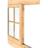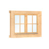 La Ventana para Caseta de Doble Acristalamiento L6 de 120x92 cm es el complemento perfecto para mejorar la luminosidad, la ventilación y el aislamiento de cualquier caseta de madera. Fabricada en abeto nórdico de alta calidad, esta ventana aporta un acabado robusto y duradero que se integra con naturalidad en estructuras de madera de todo tipo.